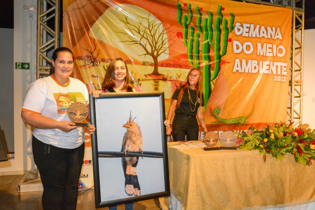 Maria Clara Fauaze, Isabella Carvalho e Sabrina Parente, a segunda colocada, foram premiadas com um troféu e um fotolivro impresso. Um quadro com a impressão de “Anu Branco” também foi presenteado a Maria Clara, pelo primeiro lugar. Os cinco primeiros colocados participarão de uma exposição itinerante que percorrerá o Planetário, o pátio da Prefeitura e o Parque Municipal da Lagoa das Bateias.