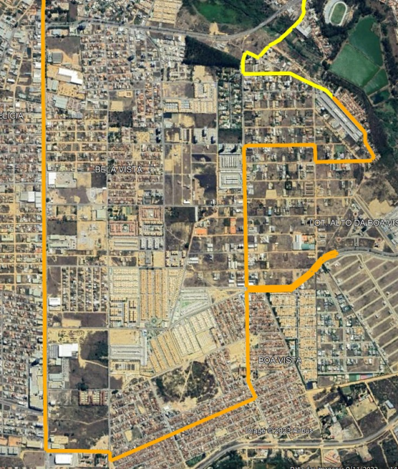 A partir deste domingo (23), a linha R18 e R18a, que atende ao bairro Boa Vista, deixará de passar em frente ao condomínio Dom Residencial, atendendo à Rua Dilson Barros, na lateral, conforme é ilustrado no mapa ao lado. A linha amarela é o itinerário sentido Centro e a linha laranja é sentido bairro.