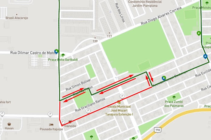 Durante esse período, o trecho compreendido entre a Pousada Itajuípe e a Via Local 3F terá seu roteiro modificado para a Rua João Cândido, conforme os mapas abaixo: