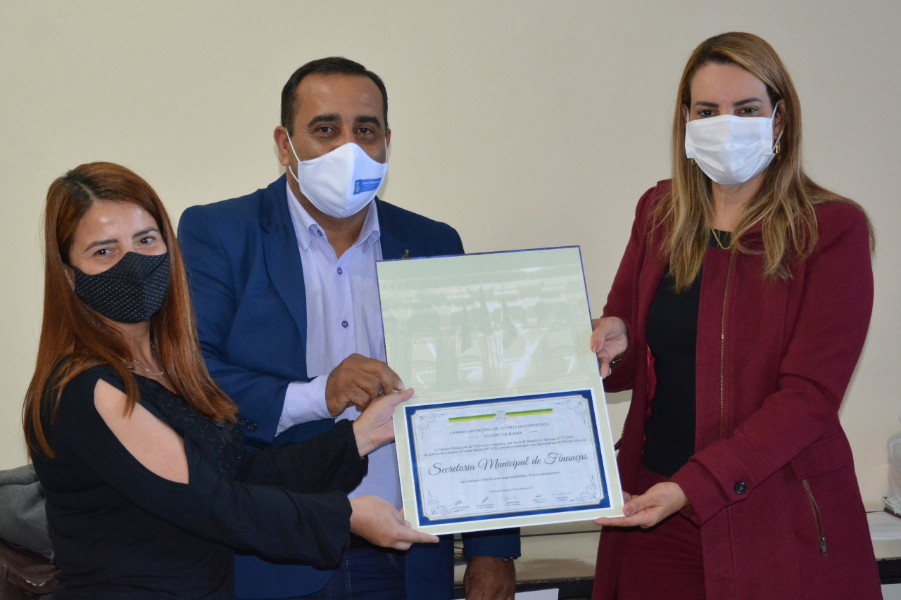 Os servidores da Secretaria Municipal de Finanças e Execução Orçamentária (Sefin) tiveram seu trabalho reconhecido por moções de aplauso aprovadas pela Câmara de Vereadores de Vitória da Conquista, a partir de recomendação do vereador Ricardo Babão, que fez a entrega dos diplomas em reunião no setor de Fiscalização da Sefin, na manhã desta quarta-feira (28), com a presença da prefeita Sheila Lemos, do secretário Jonas Sala e representantes da equipe homenageada.