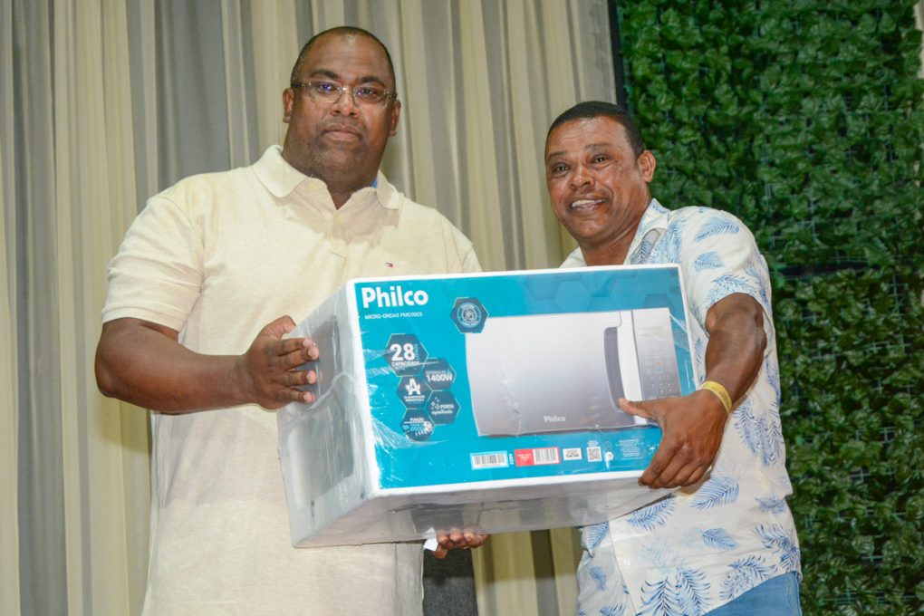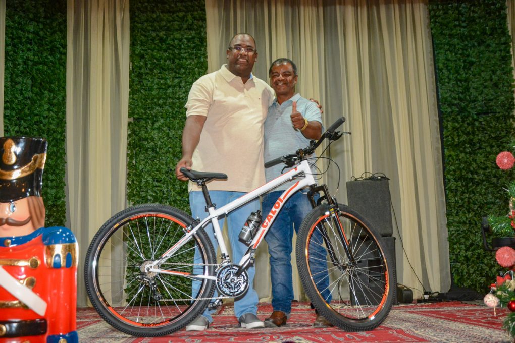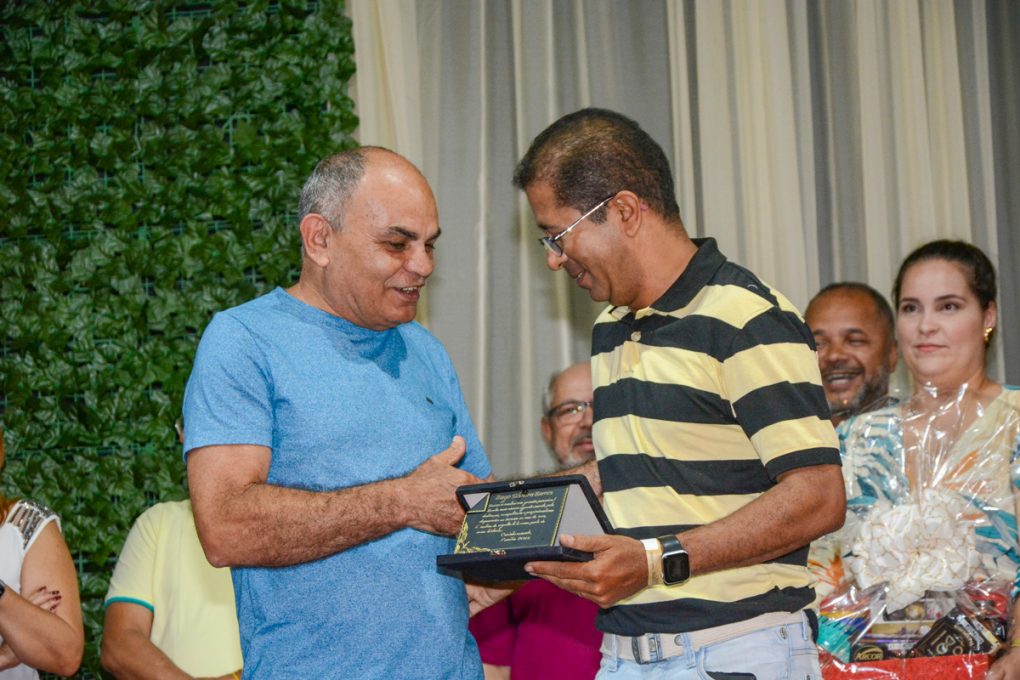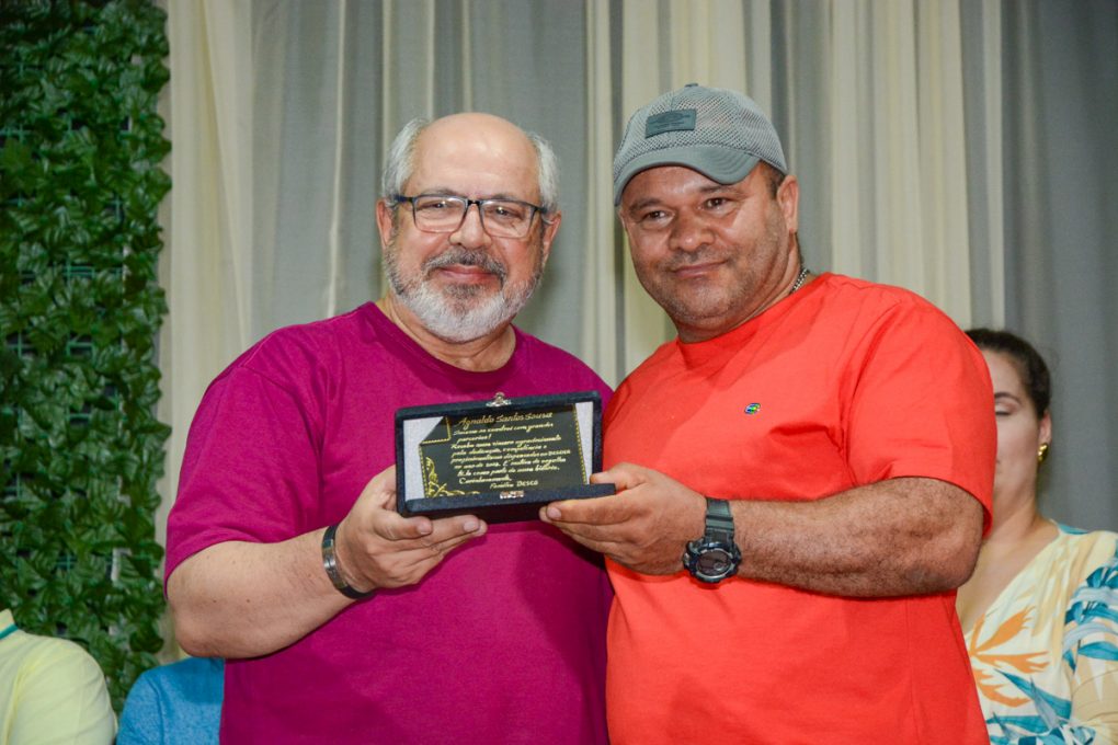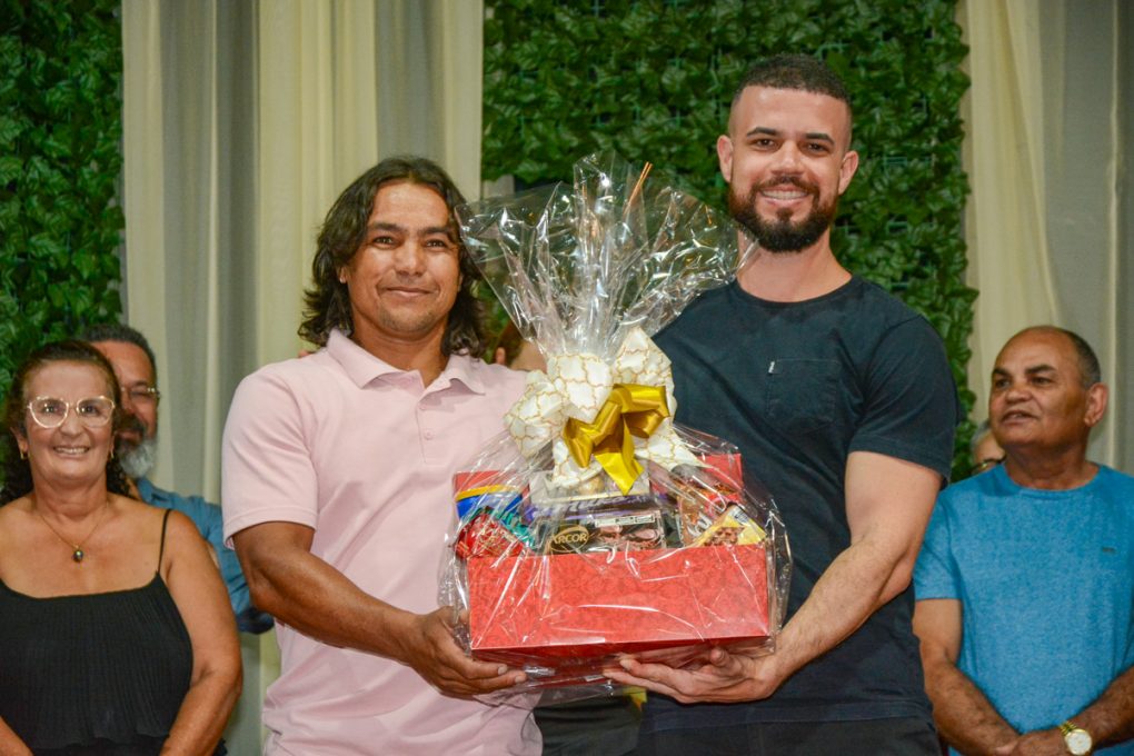 A noite contou com sorteio de presentes, jantar, show de Danilo Kiribamba e homenagens aos servidores do Deserg e pessoas que colaboram para o bom andamento do órgão. João Alves foi o primeiro homenageado. Ele trabalha como mecânico no Deserg há 41 anos, e disse que começou a trabalhar na Prefeitura na gestão de Gildásio Cairo, quando a oficina ainda era de tábua. “Depois foi construída a oficina onde hoje é a praça, depois demoliu, construiu outra, modernizou e eu tive a felicidade de acompanhar tudo”, explicou João, que ficou emocionado com a homenagem. “Eu estou me sentindo um herói hoje, realizado”, reafirmou.