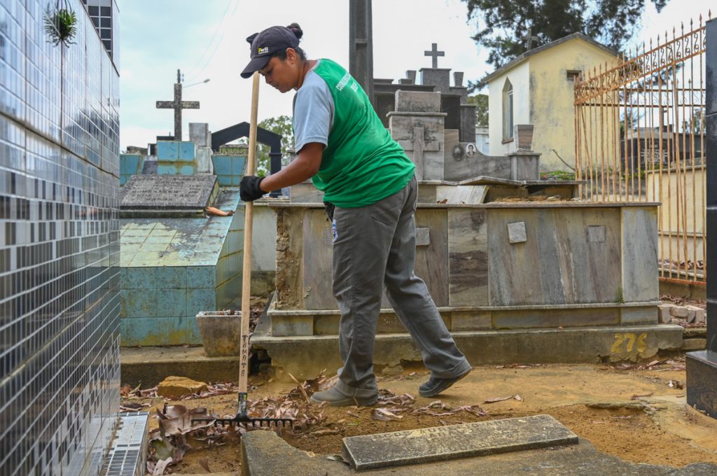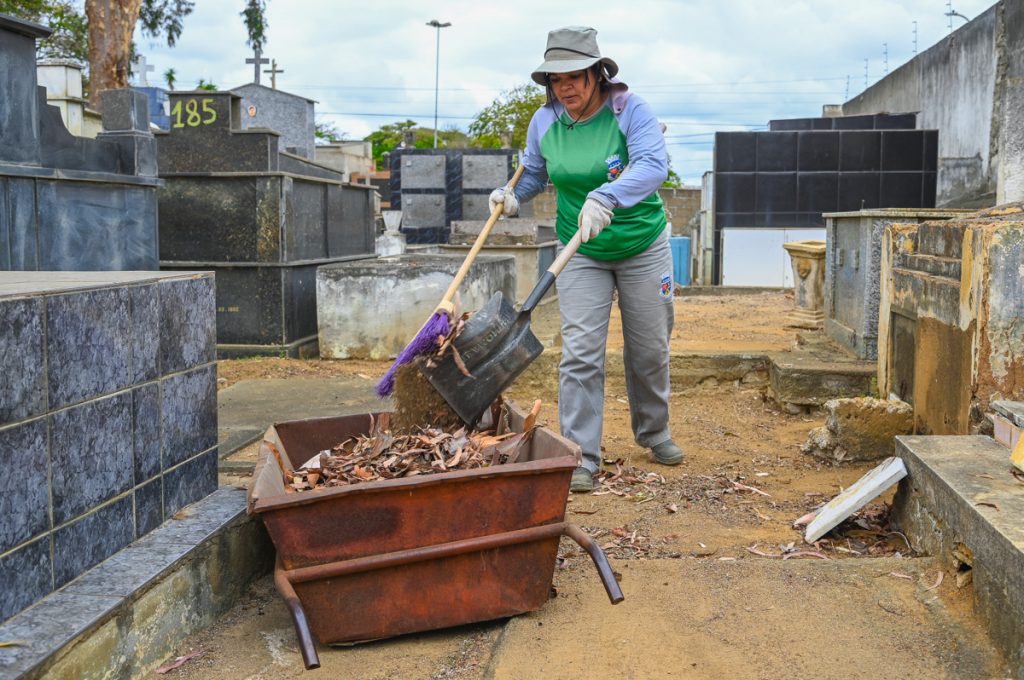 Últimos ajustes – Os cemitérios municipais estão recebendo os últimos ajustes para receber os visitantes. No cemitério do Kadija, os trabalhadores estão finalizando a varrição, capina e roçagem. Já o da Saudade, maior cemitério de Vitória da Conquista, está recebendo a manutenção da limpeza que já havia sido realizada.