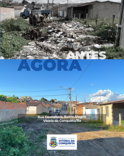Na manhã desta segunda-feira (21), a Secretaria Municipal de Serviços Públicos (Sesep) realizou a limpeza de uma área na Rua Guanabara, bairro Alegria, que vem sendo alvo frequente de descarte irregular de lixo. Foram retiradas três caçambas, com aproximadamente 25 toneladas de entulho.