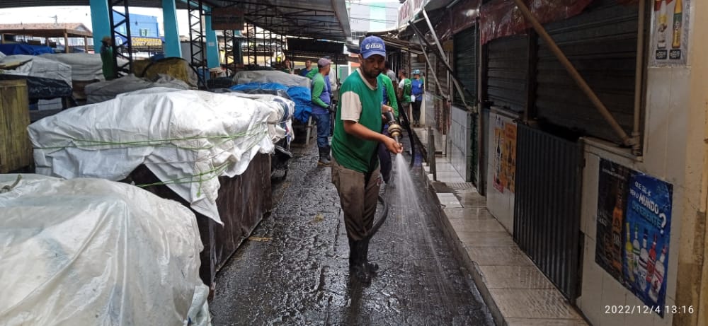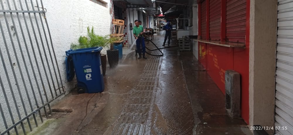 Como parte do programa de higienização de feiras-livres e mercados, equipes da Secretaria Municipal de Serviços Públicos (Sesep) fizeram ontem (4) limpeza e lavagem da Central de Abastecimento Edmundo Silveira Flores (Ceasa) e do Centro Comercial Fernando Spínola, popularmente conhecido como Mercadão, localizado na Praça da Bandeira.