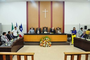 O início da sessão teve a participação do maestro Carlos Porto, tocando os Hinos Nacional e de Vitória da Conquista. A mesa de honra contou com a presença do prefeito Guilherme Menezes, do vice-prefeito, Joás Meira, do deputado estadual, Jean Fabrício Falcão, do presidente da Câmara de Vereadores, Fernando Vasconcelos, e da assessora de magistrado, Janine Matos Ferraz, representando a diretora do Fórum João Mangabeira, Solange Maria de Almeida Neves.