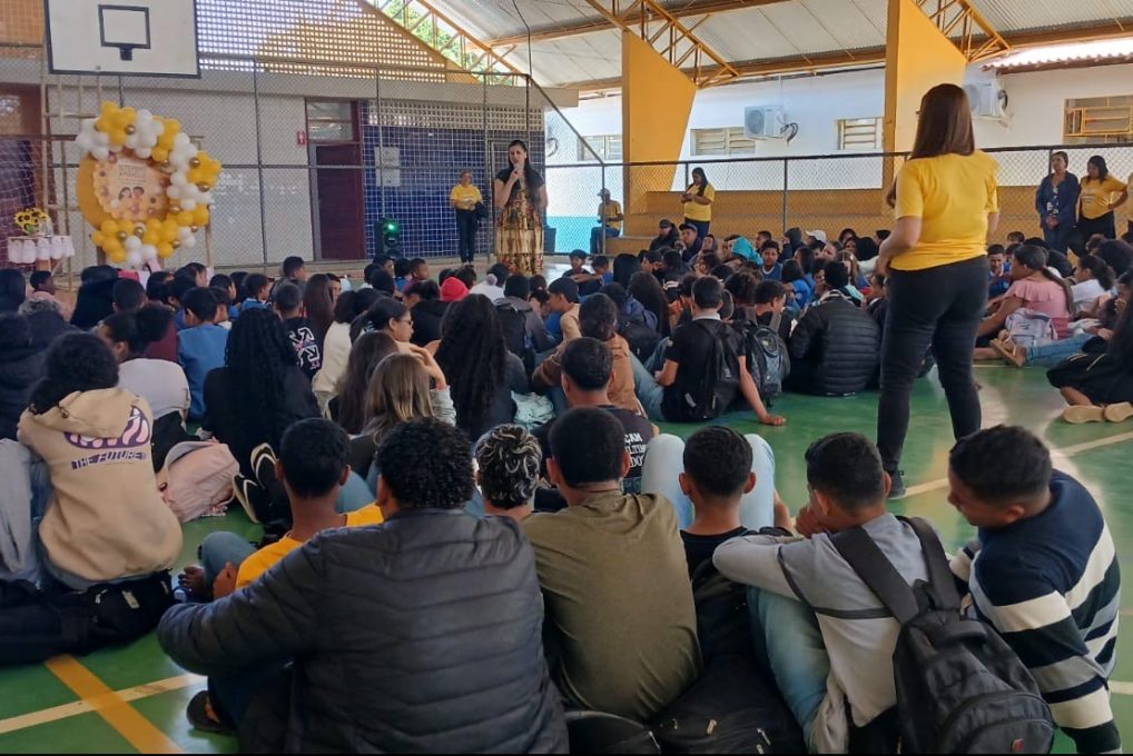 Para conscientizar alunos das redes municipal e estadual sobre o cuidado com a saúde mental e a importância do acolhimento neste mês dedicado à prevenção ao suicídio, a Coordenação da Juventude, ligada à Secretaria Municipal de Desenvolvimento Econômico (SMDE), está realizando o projeto “Setembro Amarelo: um olhar para a juventude”, em escolas das zonas urbana e rural de Vitória da Conquista. A ação teve início no último dia 4, no Colégio Estadual Heleusa Figueira Câmara (Antigo Colégio Modelo), e segue até a próxima terça-feira (16), na Escola Municipal Erathóstenes Menezes (distrito de Iguá) e nos Colégios Padre Palmeira (Urbis V) e na extensão do Colégio Polivalente (distrito de Pradoso).