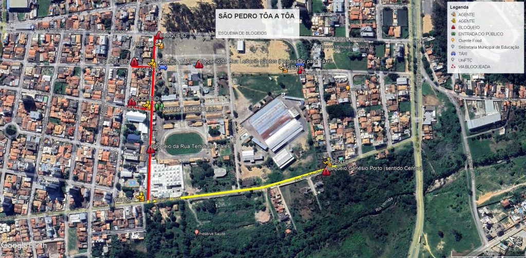Uma equipe formada por 16 agentes de trânsito garantirá a ordem e a mobilidade no local, tendo em vista o grande fluxo de veículos e pedestres que passarão pelo local. Os acessos serão garantidos aos moradores e aos motoristas de táxis, que estarão concentrados na Rua Leôncio Santos.