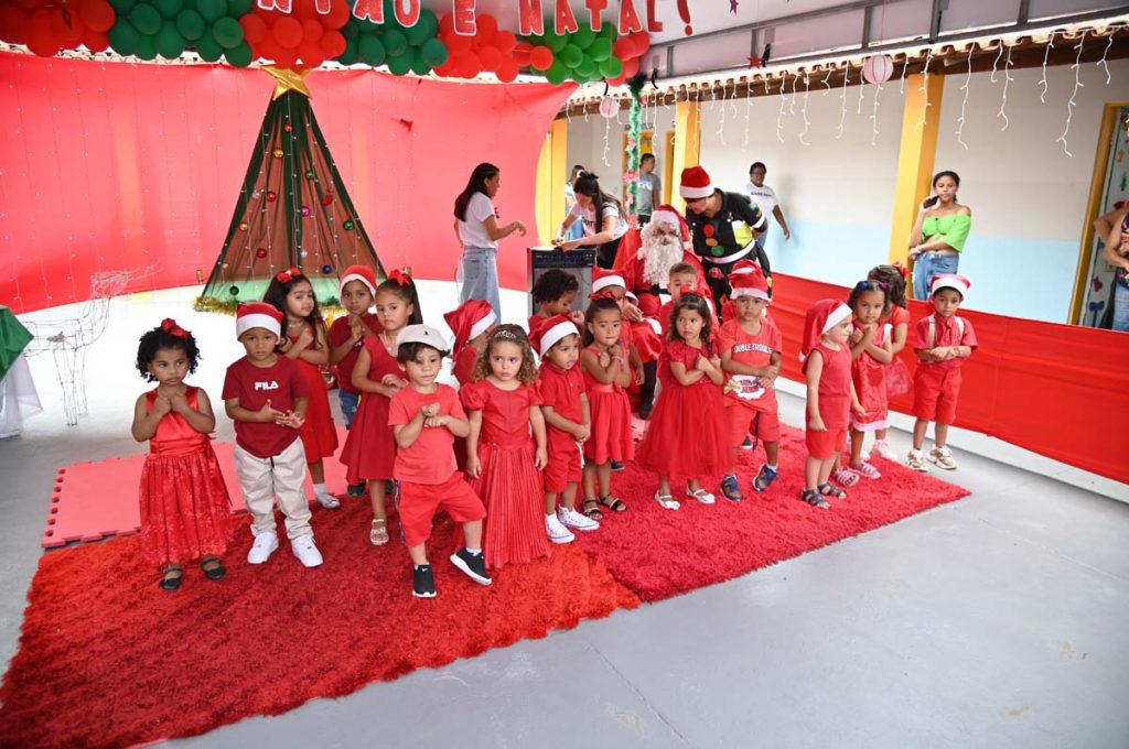 A diretora do Cmei, Núbia Bahia, afirma que a atividade de hoje é uma oportunidade de gerar maior aproximação com a comunidade e com as famílias das crianças. “São 200 crianças atendidas aqui e hoje é um momento especial. Contamos com a ajuda do Simtrans e de outros parceiros para a vinda do Papai Noel e também na doação de presentes e lanches para comemorar este Natal”, salientou a diretora.