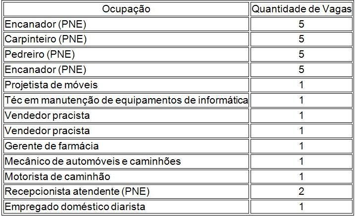O Sistema Nacional de Emprego (Sine) de Vitória da Conquista, antigo Portal do Trabalhador, informa que estão disponíveis 30 vagas de emprego nesta quarta-feira, 3. Os interessados podem se dirigir à Avenida Bartolomeu de Gusmão, nº 744, bairro Jurema, e se cadastrar no sistema. Para realizar o cadastro, a pessoa deve ter idade mínima de 16 anos e apresentar os seguintes documentos: RG, CPF, Carteira de Trabalho, comprovante de residência e currículo comprovado. O Sine Conquista funciona das 7h às 19h, sem intervalo para almoço. Mais informações podem ser obtidas pelo telefone (77) 3429-3150.