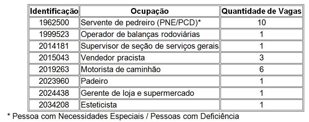 O Sistema Nacional de Emprego (Sine) de Vitória da Conquista acaba de divulgar as oportunidades disponíveis no mercado profissional da cidade para esta segunda-feira, 16. Estão sendo oferecidas 24 vagas para diferentes funções, como servente de pedreiro e operador de retroescavadeira.
