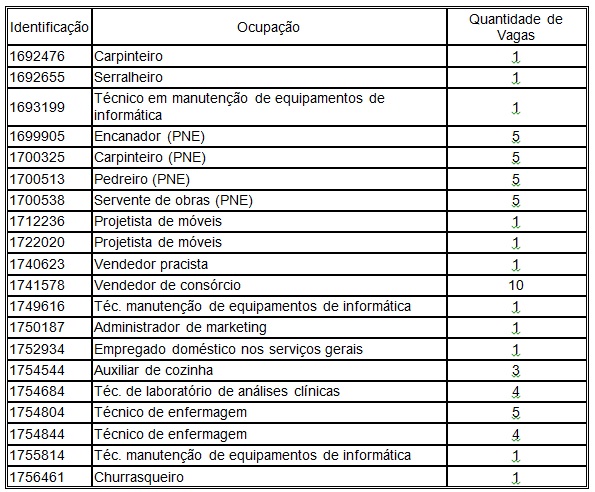 Se você estava em busca de boas notícias a respeito do mercado de trabalho, fique atento a esta: o Sistema Nacional de Emprego de Vitória da Conquista (Sine Conquista) está intermediando nesta quinta-feira, 6, cerca de 60 vagas de emprego. Há oportunidades para carpinteiros, serralheiros, vendedores de consórcio e técnicos de enfermagem.