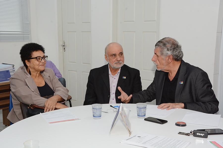 O Governo Municipal se reuniu na tarde desta sexta-feira (24) com o Sindicato dos Servidores Municipais de Vitória da Conquista (Sinserv). O prefeito Herzem Gusmão e secretários municipais recepcionaram a diretoria na Prefeitura da Zona Oeste. Os assuntos em pauta foram Vila do Servidor, Guarda Municipal e abertura de conta-salário no Banco Itaú.