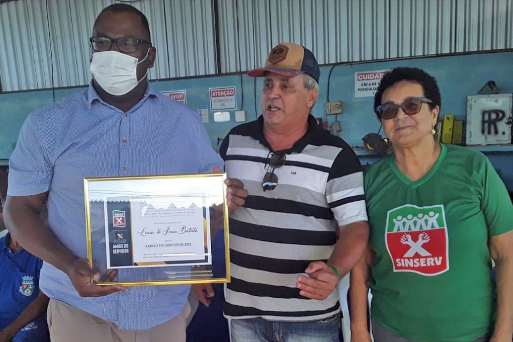 A valorização dos servidores que exercem suas funções no Departamento de Equipamento (Deserg), ligado à Secretaria Municipal de Infraestrutura (Seinfra), foi destaque mais uma vez. Em uma Assembleia Setorial do Sindicato dos Servidores Públicos Municipais (Sinserv), realizada na última quarta-feira (24), a diretoria da instituição entregou para o coordenador Lucas Batista a Comenda Amigo do Servidor, título que passa a ser conferido a gestores públicos que se destacam a partir de relevantes iniciativas que beneficiem os servidores municipais.