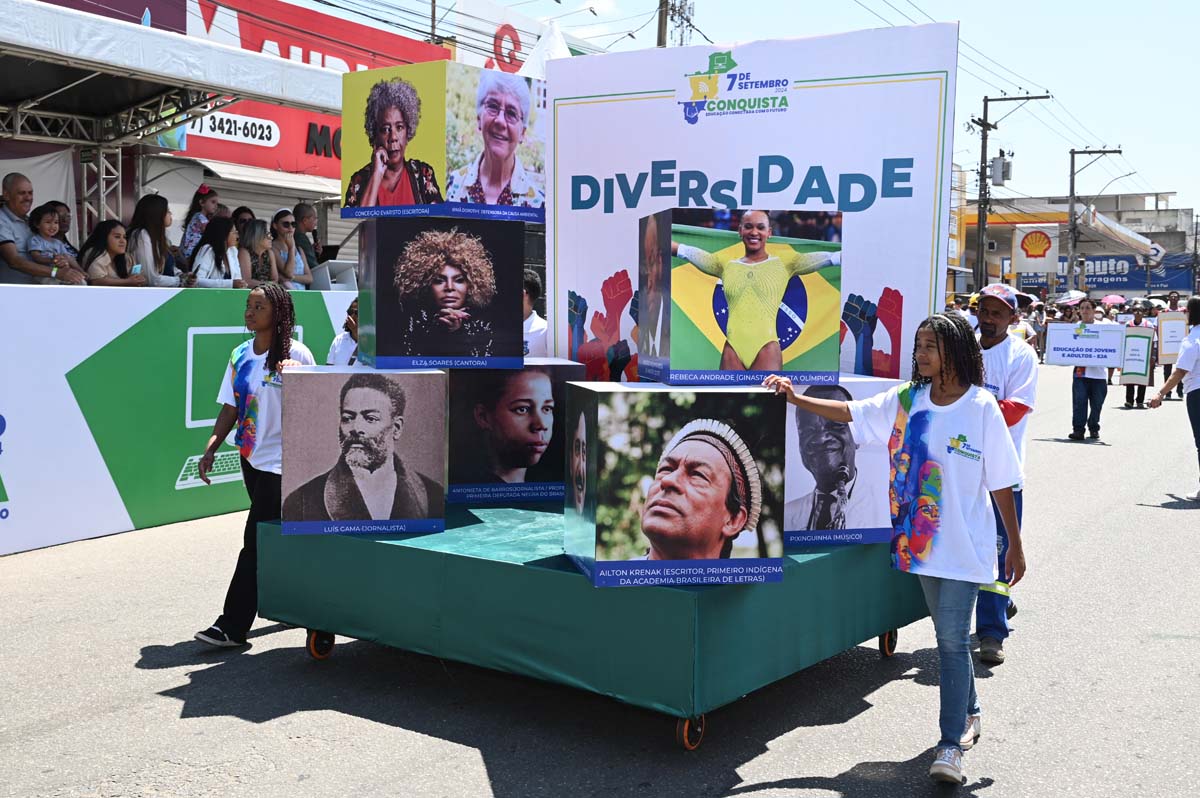 No desfile de Sete de Setembro, em comemoração aos 202 anos de Independência do Brasil, a Secretaria Municipal de Educação (Smed) apresentou na Avenida Integração, o tema “Conquista: Educação conectada com o futuro”. Mais de 2 mil alunos de várias escolas das zonas urbana e rural, além do Centro Municipal de Educação Infantil (Cmei) José Capitulino Teles, participaram do desfile. O evento contou com quatro fanfarras, uma percussão, apresentações coreográficas e cerca de 20 carros alegóricos simbolizando os conteúdos ensinados e aprendidos na vida estudantil, que deixaram ainda mais bonita a apresentação. Vários servidores do passado e de hoje também foram homenageados.