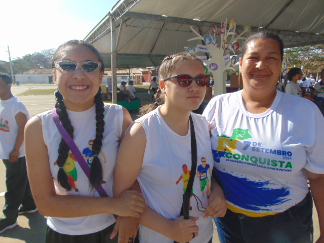 A aluna do 6º ano, Valentina Galvão Rabello, estava acompanhada da irmã gêmea Tarcila e do pai Damião Aparecido Rabello. Ambas têm o diagnóstico de lipofuscinose neural tipo 3, que aos poucos vai tirando a visão, caso de Valentina, e movimentos. Ela ficou animada em participar do desfile. “Eu adoro ir para os outros lugares. Estou muito contente em participar com os colegas”.