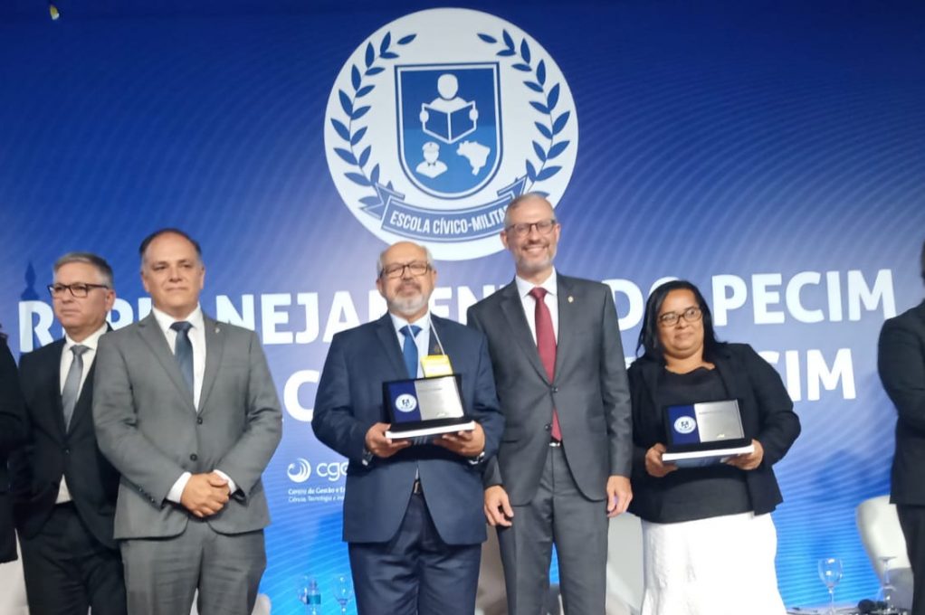O secretário municipal de Educação, Edgard Larry, participou nesta terça-feira (7) da apresentação do replanejamento do Programa Nacional das Escolas Cívico-Militares (Pecim), em cerimônia no Ministério da Educação, com a participação do ministro Victor Godoy. O coordenador do Núcleo Pedagógico da Smed, Ronílson Ferreira, a coordenadora de Administração Escolar, Nélia Oliveira, e a diretora da Escola Municipalizada Carlos Santana, Mary dos Santos Oliveira, também fizeram parte da comitiva que esteve em Brasília. A unidade foi incluída no programa no dia 24 de novembro de 2021, em solenidade no Palácio do Planalto, que contou com a presença do presidente Jair Bolsonaro.