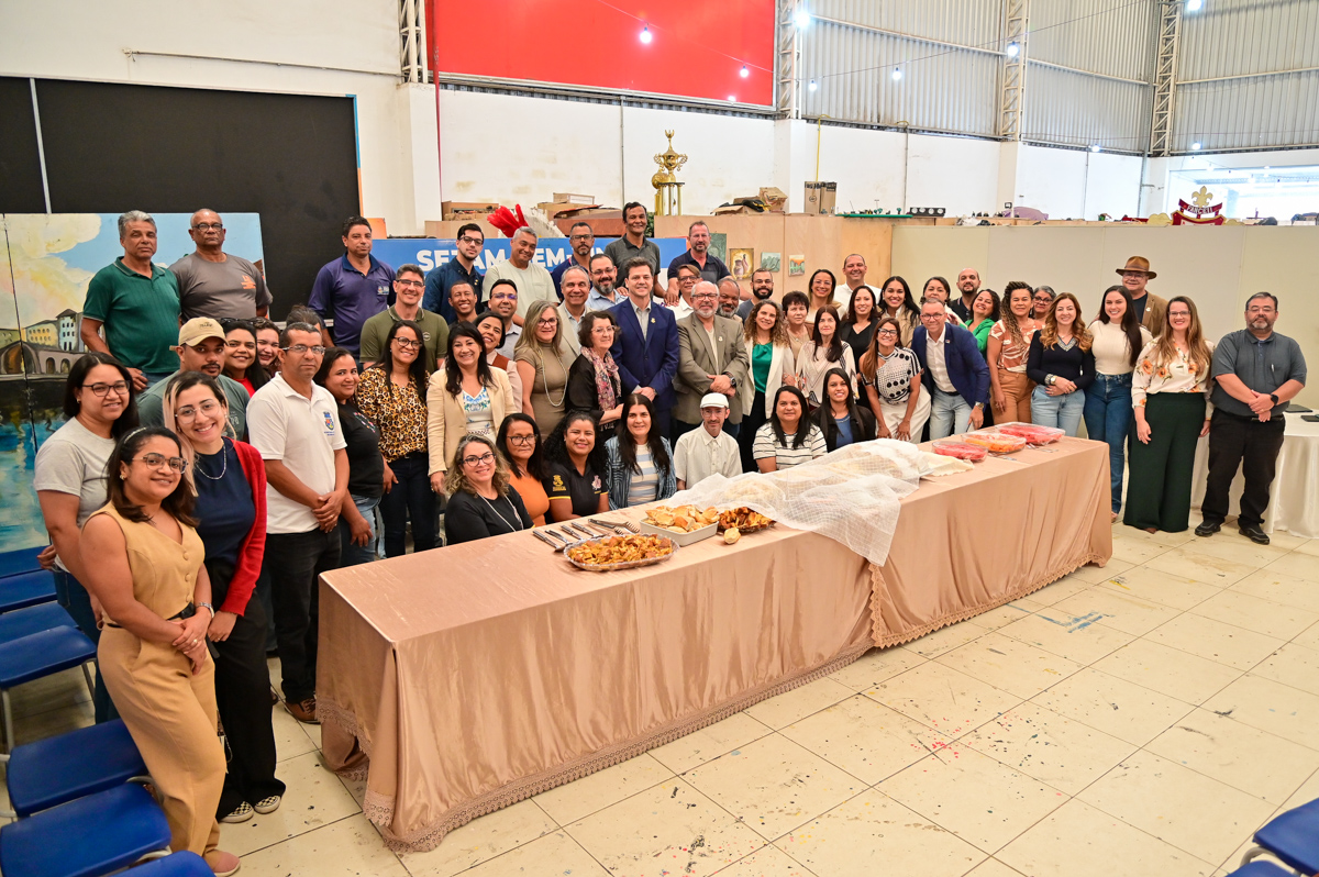 Nesta segunda-feira (15), a Secretaria Municipal de Educação (Smed) promoveu um encontro com os servidores que atuaram na organização do desfile de Sete de Setembro, nesta segunda-feira (15), no galpão do Serviço de Material de Eventos e Artes (Smea). O prefeito em exercício, Aloisio Alan Costa Fernandes, participou do encontro.