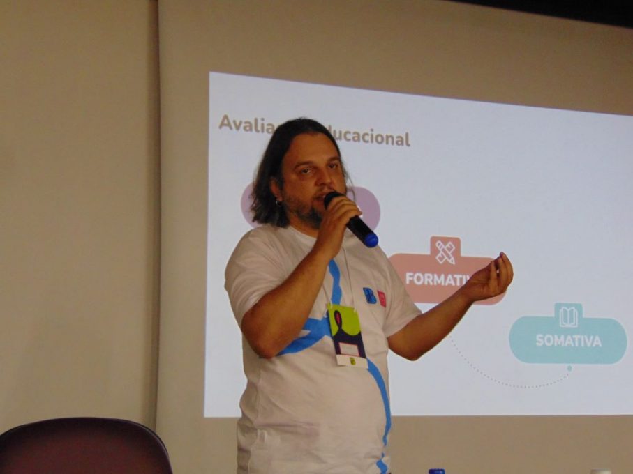 Professor e gerente de Avaliações do Educar Pra Valer, Aílton Galvão, apresentou a palestra “Avaliação da Aprendizagem – uma análise qualitativa dos resultados”. Ele explicou como utilizar as avaliações (percurso) feitas durante o ano para trabalhar as intervenções pedagógicas nas escolas e como melhorar o acompanhamento através desses dados. “É algo que temos que cultivar melhor no país, esse uso de dados como forma de melhorar o acompanhamento e a intervenção pedagógica nas escolas”. Os resultados do Saeb 2021 e a futura avaliação que será feita pelo Estado também foram abordados.