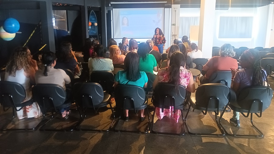 A representante das Soluções Moderna, professora Micheli Cruz, foi a responsável pela formação dos professores. Ela explicou que o Território da Leitura traz uma reflexão muito pertinente, necessária e importante sobre os contos afrodiaspóricos, que são literaturas afrocentradas escritas ou pautando a afrocentricidade e a presença do negro, da negra, na literatura brasileira. As literaturas indígenas, tanto de autoria indígena como de conteúdo, fazem parte da temática desta semana.