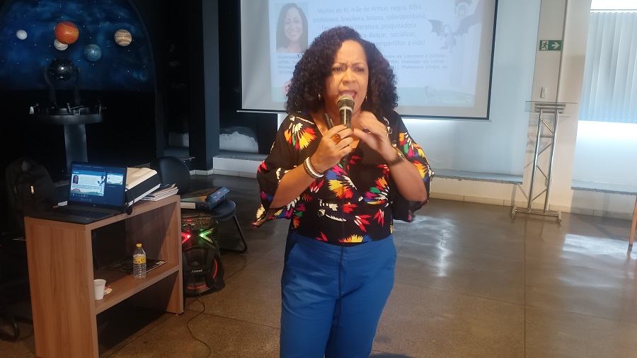 A representante das Soluções Moderna, professora Micheli Cruz, foi a responsável pela formação dos professores. Ela explicou que o Território da Leitura traz uma reflexão muito pertinente, necessária e importante sobre os contos afrodiaspóricos, que são literaturas afrocentradas escritas ou pautando a afrocentricidade e a presença do negro, da negra, na literatura brasileira. As literaturas indígenas, tanto de autoria indígena como de conteúdo, fazem parte da temática desta semana.