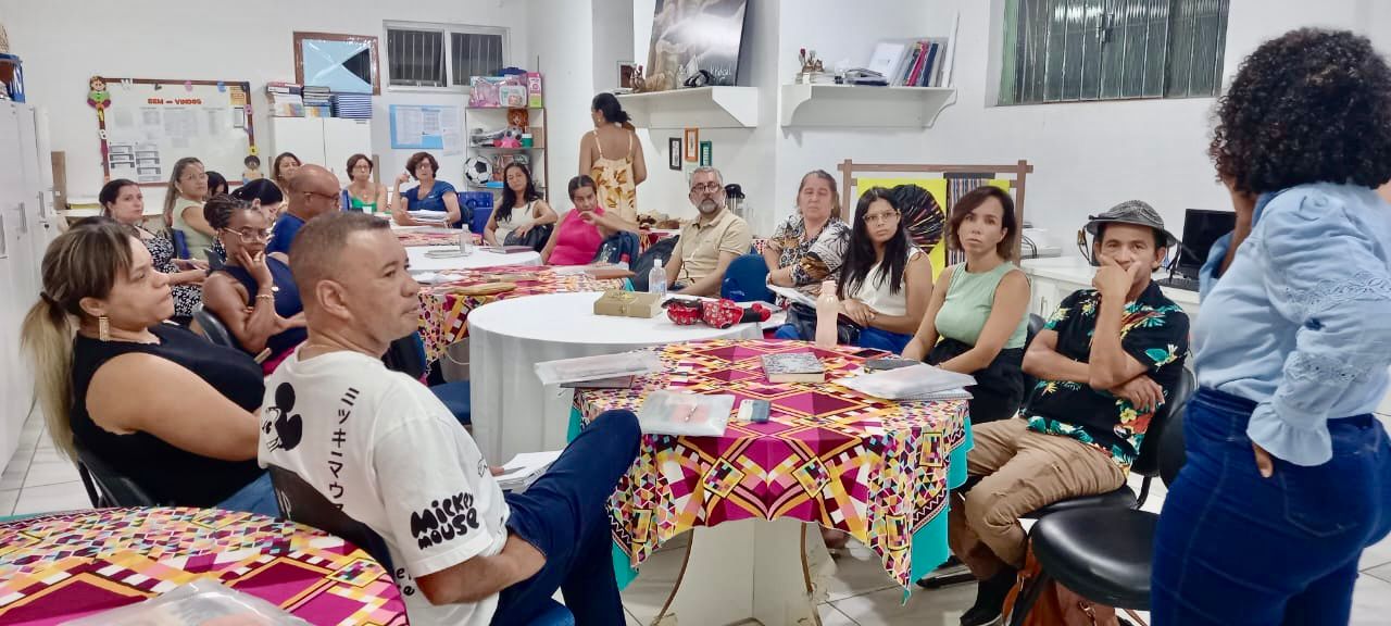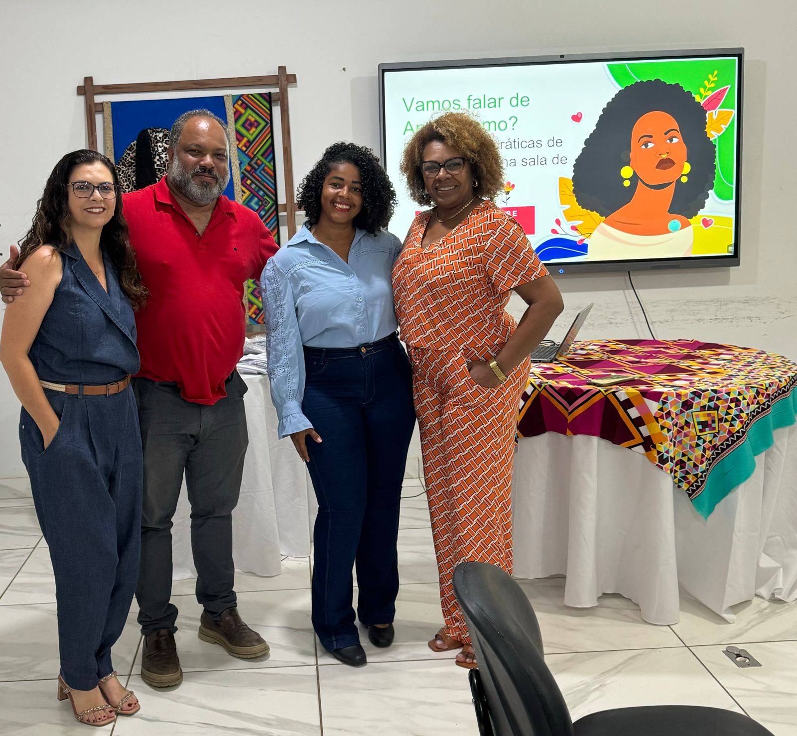 A Secretaria Municipal de Educação (Smed) realizou uma formação direcionada aos coordenadores e gestores da Educação de Jovens e Adultos (EJA), com a temática “Vamos falar de antirracismo? Estratégias e práticas de enfrentamento na sala de aula”. O evento aconteceu no Núcleo Pedagógico da Smed e foi conduzido pelas coordenadoras pedagógicas da modalidade da EJA, Aldina dos Santos, Karina Melchisedeck e Marília do Amparo.