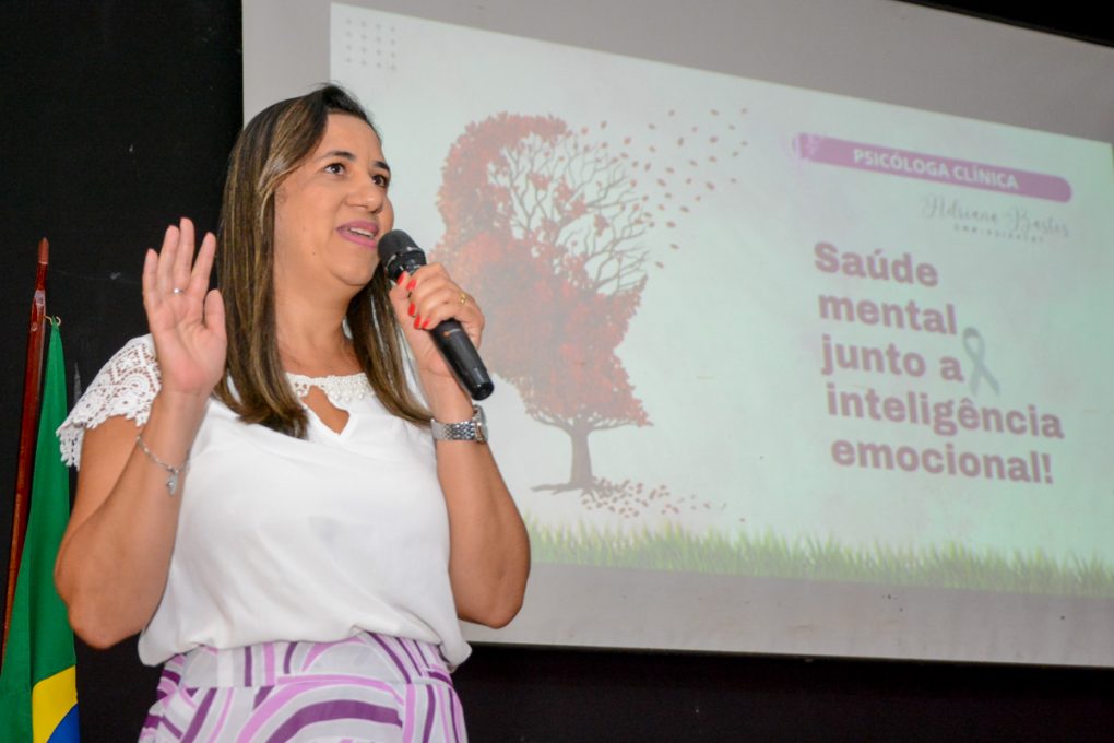 No decorrer do acolhimento, a psicológa Adriana Bastos fez a primeira oficina do dia, pautando a importância de cuidar da saúde mental. “O cuidado que eu tenho que ter com as minhas emoções só depende de mim. Eu não posso esperar que meu marido tenha esse cuidado por mim. Que os meus filhos tenham esse cuidado. Eu tenho que me conhecer”, disse, dirigindo-se às manipuladores de alimentos. Ainda no evento, ela falou sobre a necessidade da boa alimentação e da prática regular de exercícios físicos.