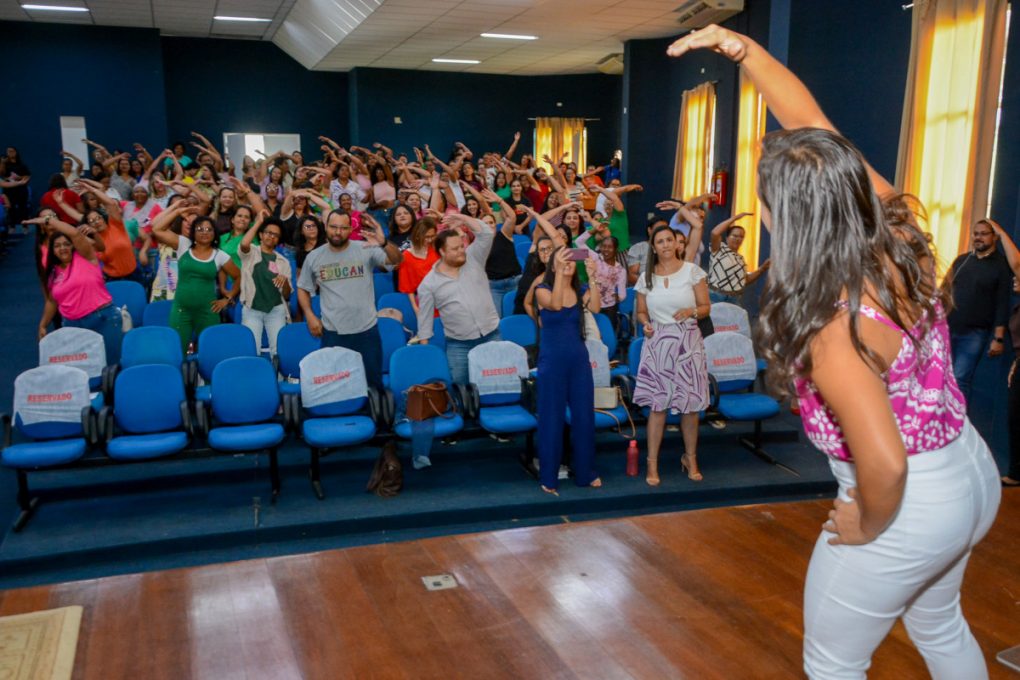 Durante o evento, realizado no auditório Lúcia Dórea (Cemae), nesta quinta-feira (8), as servidoras foram recepcionadas com muita alegria, cantoria e calor humano. Segundo o coordenador de Alimentação Escolar da Secretaria Municipal de Educação (Smed), Rodrigo Gigante, esse momento pode ser considerado como um “acolhimento e abraço coletivo”. Além dos períodos de descontração, também foram ofertadas duas oficinas: a primeira, sobre a saúde mental e a segunda, relacionada ao bem-estar físico.
