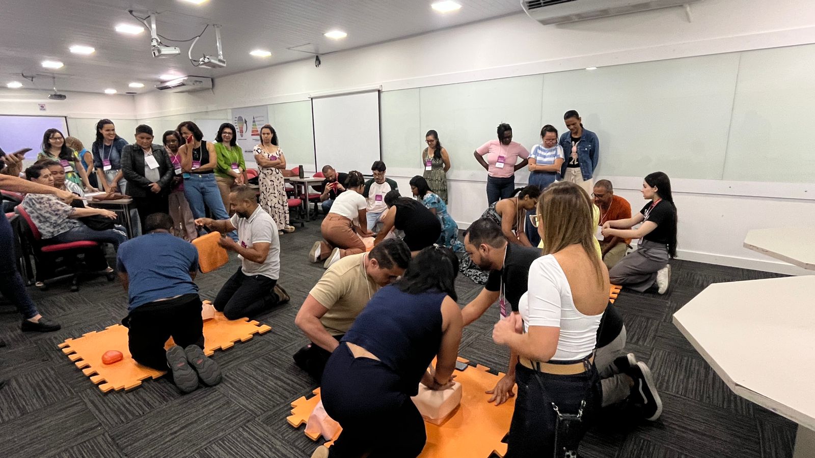 A formação conta com 20 horas de atividades teóricas e práticas, incluindo simulações realísticas nos laboratórios da instituição. Entre os conteúdos trabalhados estão primeiros socorros, reconhecimento e manejo inicial de emergências, uso do Desfibrilador Externo Automático (DEA), práticas atualizadas de reanimação cardiopulmonar e estratégias de letramento em saúde voltadas para comunicação segura, acolhimento e orientação ao usuário.