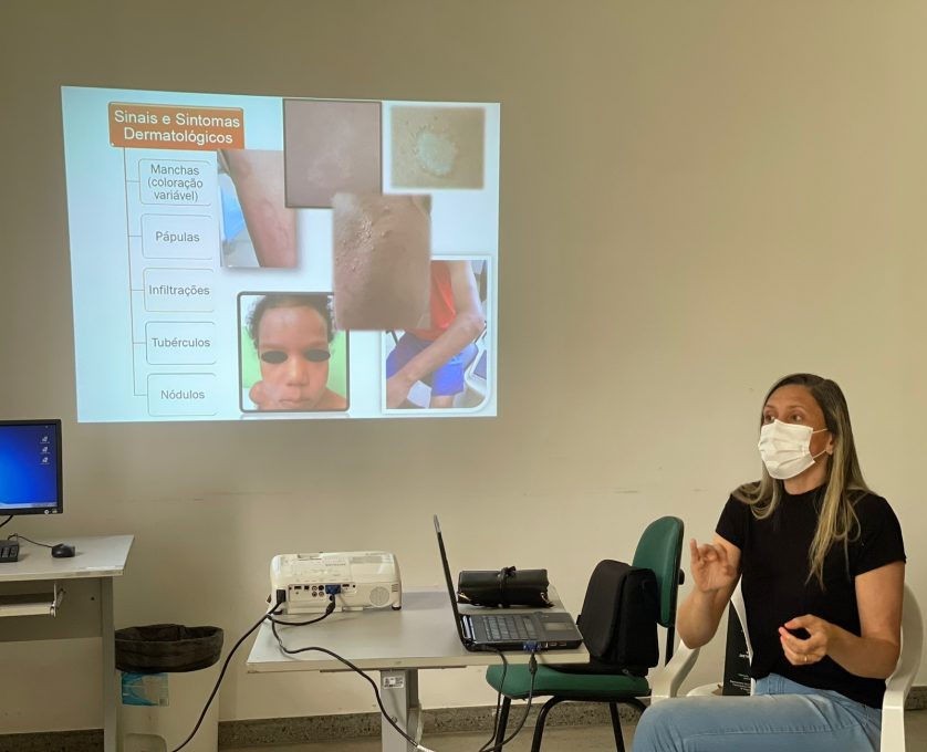 Na reunião, foi apresentado o cenário epidemiológico da hanseníase no município e orientações sobre a identificação e vigilância da doença para que as equipes hospitalares possam manejar da forma correta esses pacientes, principalmente aqueles que chegam em reação hansênica, porque são esses pacientes que vão precisar de hospitalização.