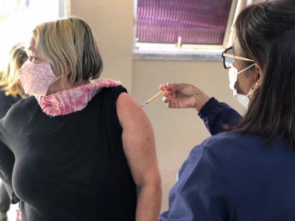 Na vacinação desta quarta-feira (4), a faixa etária desce para aplicação da 1ª dose para a população geral de 38 anos ou mais, além de pessoas com doenças crônicas e condições especiais, gestantes, puérperas e lactantes, todos com 18 anos ou mais.