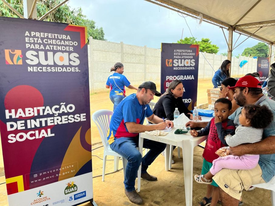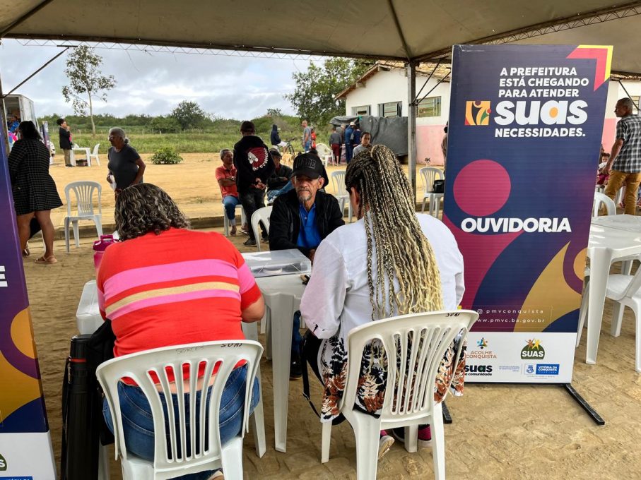 A Prefeitura de Vitória da Conquista, por meio da Secretaria Municipal de Desenvolvimento Social (Semdes), realizou neste domingo (25) mais uma edição do programa Suas na Comunidade. Desta vez, a ação foi realizada no Assentamento Caldeirão, no distrito de Cercadinho, e atendeu também moradores da Fazenda Monte das Oliveiras e dos assentamentos Cipó, Mutum, Fábio Santos, Olho D’Água e Arizona, garantindo o acesso a diversos serviços públicos voltados à proteção social e à promoção de direitos.