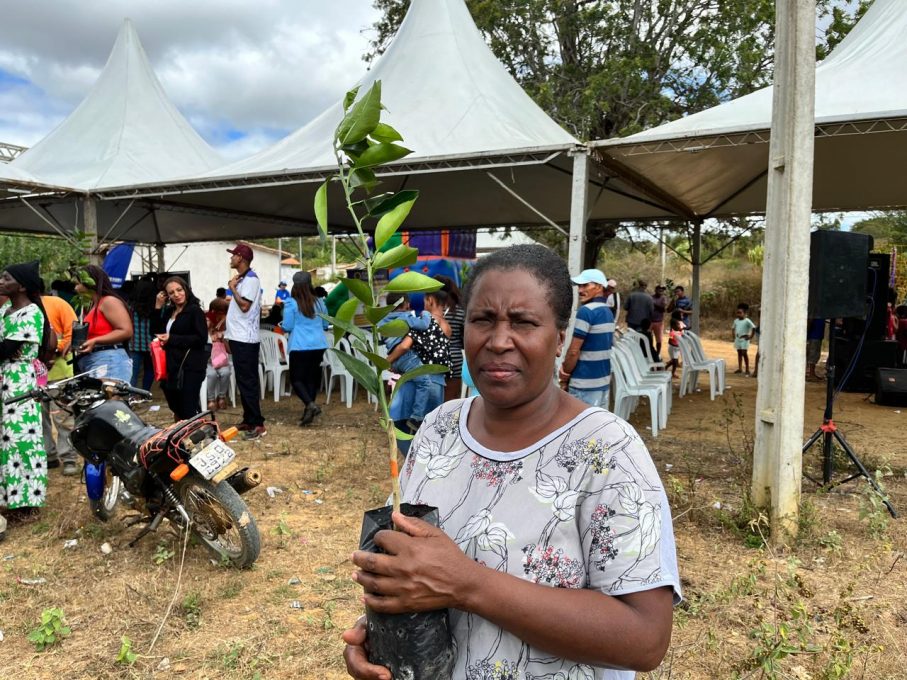 A quilombola Maria Araújo participou da ação e comemorou a oferta de serviços em sua comunidade. “Essa ação aqui é muito boa para a gente, me deixou muito feliz. Eu recebi a muda de laranja e vou levar para minha casa para plantar”, relatou.