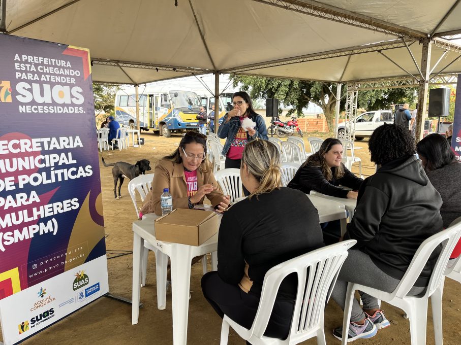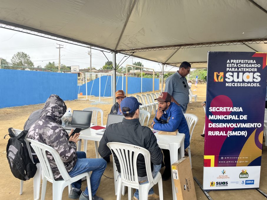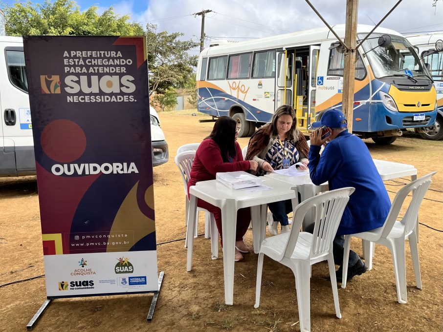 A Prefeitura de Vitória da Conquista, por meio da Secretaria Municipal de Desenvolvimento Social (Semdes), realizou a 12ª edição do programa Suas na Comunidade 2025, neste domingo (3). A ação aconteceu na quadra poliesportiva de Duas Vendas e atendeu moradores do distrito de Cabeceira do Jiboia e dos povoados Lajedinho, Brejo, Fazendinha, Duas Vendas, Periquito, Jiboia 1 e Corredor do Bonito.