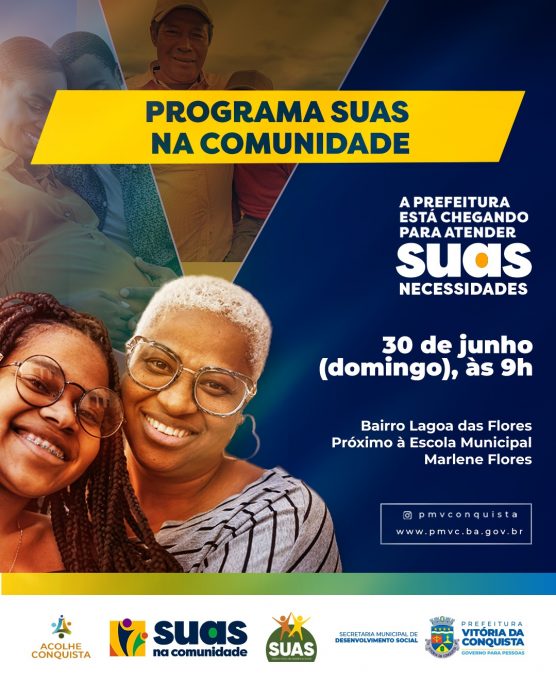 O Suas na Comunidade é um programa municipal, organizado pela Secretaria de Desenvolvimento Social (Semdes), em articulação com outras secretarias do Governo. Por meio do programa, a Prefeitura de Vitória da Conquista já realizou mais de 6.700 atendimentos, para mais de 4.700 moradores da Zona Rural e dos condomínios do Minha Casa, Minha Vida.