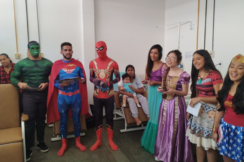 Durante a visita, os super-heróis cantaram, brincaram e contaram histórias adaptadas de clássicos infantis, criando uma ponte entre o momento da internação e o universo mágico dos heróis favoritos das crianças. “As histórias são adaptadas para refletir o momento que as crianças estão vivendo. Dessa forma, elas conseguem se identificar tanto com a situação quanto com os personagens”, completou a professora.