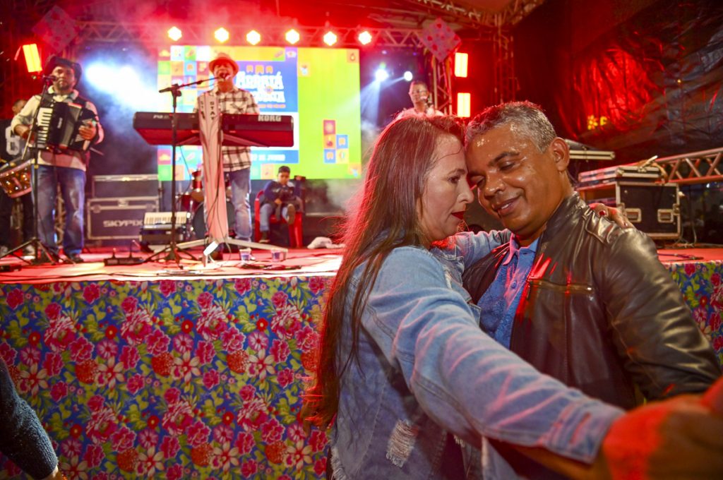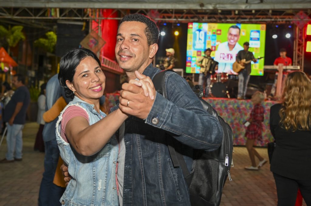 O servidor público Fábio Teixeira e a trabalhadora doméstica Clarisse Souza também cumpriram o roteiro habitual: primeiro, as compras; depois, a diversão no Arraiá da Conquista. Eles não comemoraram o aniversário de relacionamento no Dia dos Namorados, mas o farão numa data próxima: em 23 de junho, véspera de São João, eles completam quatro juntos. E, na Praça Nove de Novembro, aparentavam já estar em clima de comemoração. “Está muito bem organizado”, elogiou Clarisse. “Desde o ano passado que a gente está curtindo o forró aqui da praça, e está muito bom. E o do Glauber Rocha, melhor ainda”.