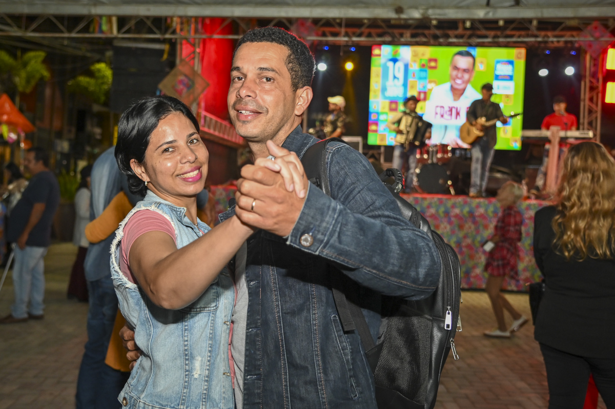 Para Fábio, a diversão na praça foi uma espécie de “esquenta” para as comemorações do casal. “A esposa aqui é namorada, é tudo”, declarou-se o servidor público. “Já passamos ali, escutamos o forrozinho. Dá vontade de dançar, mas nós estamos com um pouco de pressa. Temos que ir pra casa da noiva, esposa, namorada, dar um beijinho nela e dançar um forrozinho coladinhos em casa, eu e ela”, confidenciou.