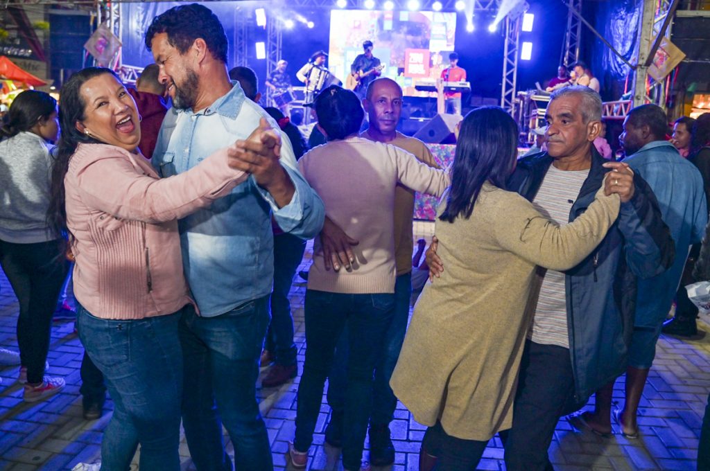A terceira noite do Arraiá da Conquista, nesta quarta-feira (12), em pleno Dia dos Namorados, manteve a boa média de público registrada nas duas noites anteriores. Muitos casais saíram das compras no Centro da cidade direto para a Praça Nove de Novembro, a fim de comer alguma guloseima, degustar um quentão ou um licor – ou uma cerveja gelada, apesar do clima frio – e curtir as apresentações dos cantores Genivaldo e Maildo Nogueira.