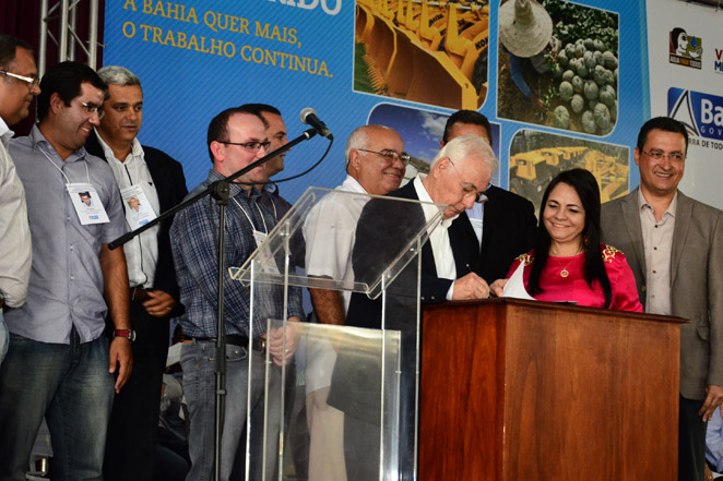 Regularização fundiária –No ato, o Instituto Nacional de Colonização e Reforma Agrária (Incra) anunciou imissão de posse da Fazenda Monte das Oliveiras, no município de Vitória da Conquista. São 3 mil hectares, nos quais 61 famílias serão assentadas. O estado ainda entregou 208 títulos de regularização fundiária a agricultores familiares que passam a ser, oficialmente, os donos das propriedades.