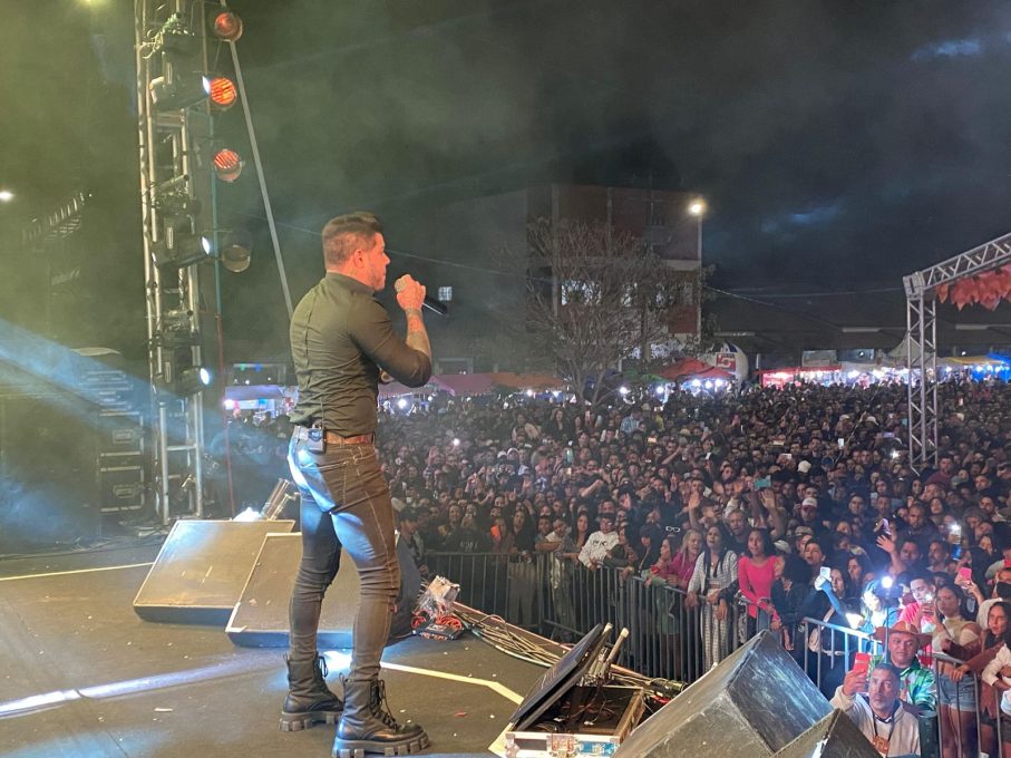 Antes de subir ao palco do Centro Cultural Glauber Rocha nesta sexta-feira (23) para se apresentar na quarta e última noite do Arraiá da Conquista, o cantor e compositor Tierry recebeu as boas-vindas da prefeita Sheila Lemos no camarim: “A galera está toda aí te aguardando com muita ansiedade. Desejo que você volte sempre a Vitória da Conquista. A cidade te ama”.