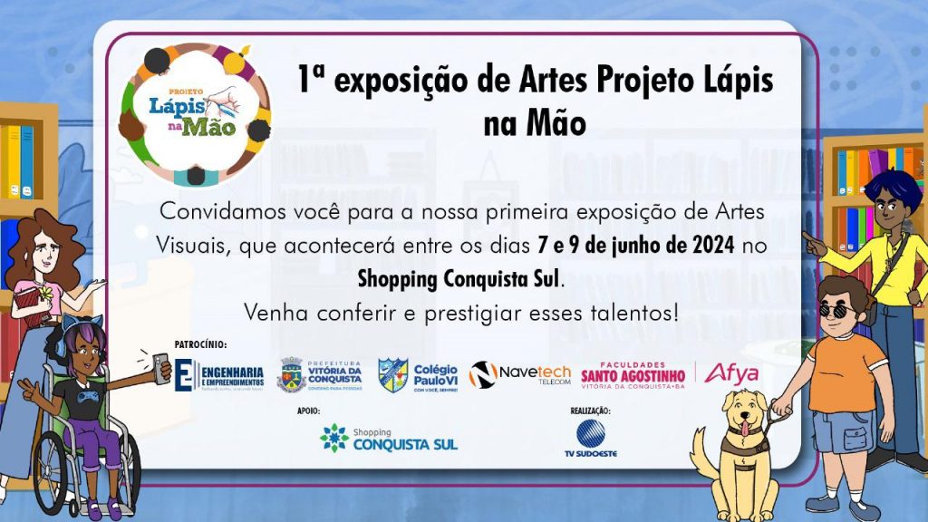 O Projeto Lápis Na Mão, promovido pela TV Sudoeste, e que tem a parceria da Prefeitura Municipal de Vitória da Conquista, promove, nos dias 7, 8 e 9 de junho, a “1ª Exposição de Artes Projeto Lápis na Mão”. O evento será realizado no Shopping Conquista Sul, e a cerimônia de abertura está marcada para acontecer nesta sexta-feira (7), às 11h.