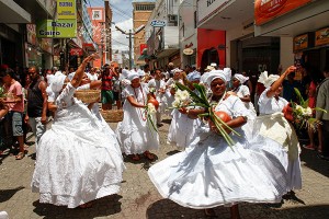 Homenagem – Além de dar início aos festejos carnavalescos, a Lavagem do Beco prestou homenagem à conquistense Dió do Acarajé, que durante muitos anos organizou o ritual.
