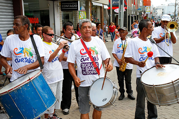 Baianas, carregando vasos com flores brancas e água de cheiro, espalharam pipoca e perfume pelas ruas, simbolizando a alegria e a prosperidade que desejam para o município. A banda de sopro do maestro Seca Gás, por sua vez, tocou antigas marchinhas de carnaval. Para completar o cortejo, um grupo percussivo e os foliões do Bloco Curtaki também marcaram presença.