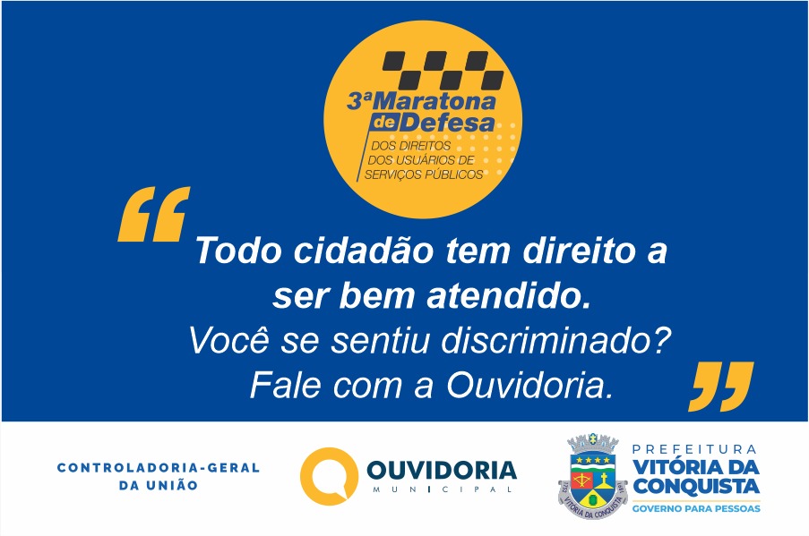 A Ouvidoria-Geral de Vitória da Conquista participa, até quinta-feira (10), da 3ª edição da Maratona de Defesa dos Direitos dos Usuários de Serviços Públicos. O evento tem o objetivo de promover e estimular o engajamento dos usuários desses serviços na busca pelo aperfeiçoamento prestados à sociedade pelos órgãos públicos.
