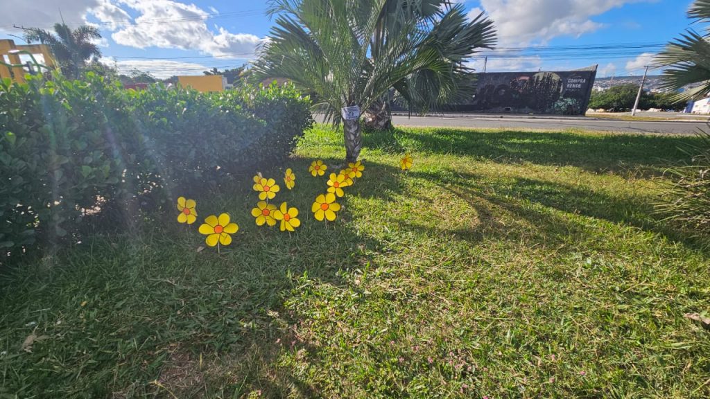 As flores feitas pelas crianças foram colocadas na Praça Norberto Aurich com o objetivo de sensibilizar a comunidade
