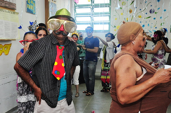 Comunicação – “Aqui eu me dou bem com todo mundo”, disse a usuária Celeste Silveira, de 52 anos, durante um breve intervalo do baile carnavalesco. “Gosto muito destas reuniões. Isso enturma mais as pessoas”, acrescentou Celeste, que há oito anos é atendida pelo Caps II.