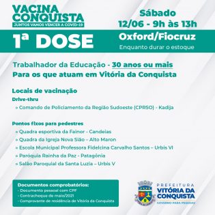 Conteúdo de Prefeitura Municipal de Vitória da Conquista – PMVC disponível em /vacinacao-continua-neste-sabado-e-inclui-pessoas-com-54-anos-ou-mais-e-lactantes-a-partir-de-18-anos/whatsapp-image-2021-06-11-at-16-52-50/ acessado em 06/10/2025 06:03:31