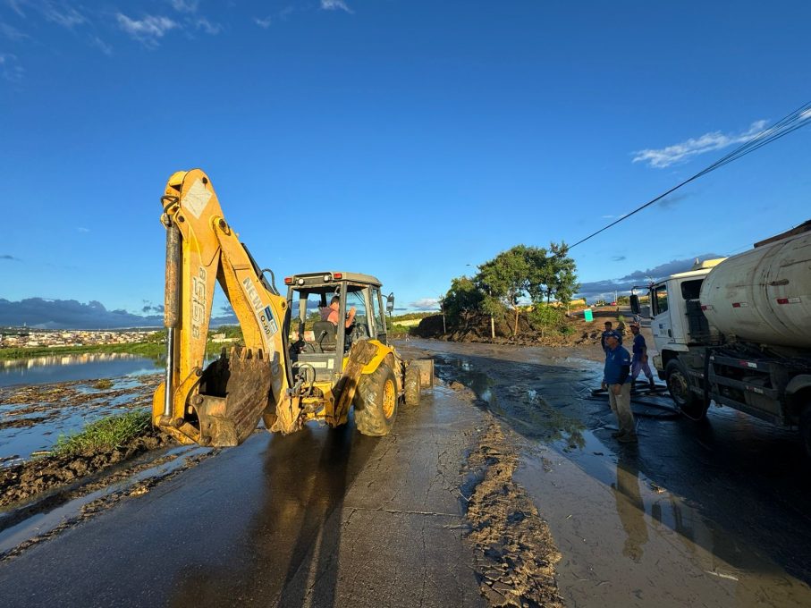 A máquina retirou o material e o caminhão-pipa lavou o local