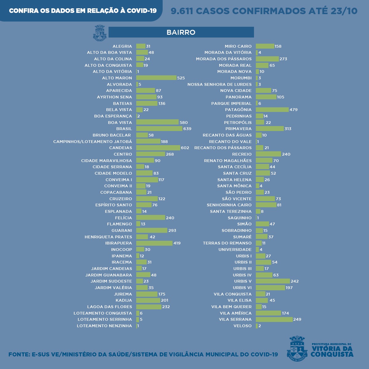 Na zona urbana de Vitória da Conquista, 9.115 pessoas foram diagnosticadas Covid-19, moradores das seguintes localidades: