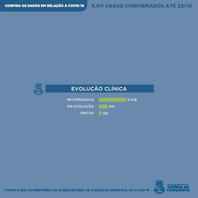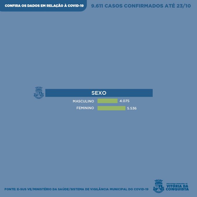 Do início das notificações, em 27 de fevereiro, até a última sexta-feira (23), Vitória da Conquista registrou 9.611 casos confirmados da Covid-19. Hoje, a Vigilância Epidemiológica divulgou a atualização do perfil semanal dos pacientes diagnosticados com a doença, incluindo os 529 novos casos registrados nos últimos sete dias, além do perfil dos pacientes que vieram a óbito nesse período.